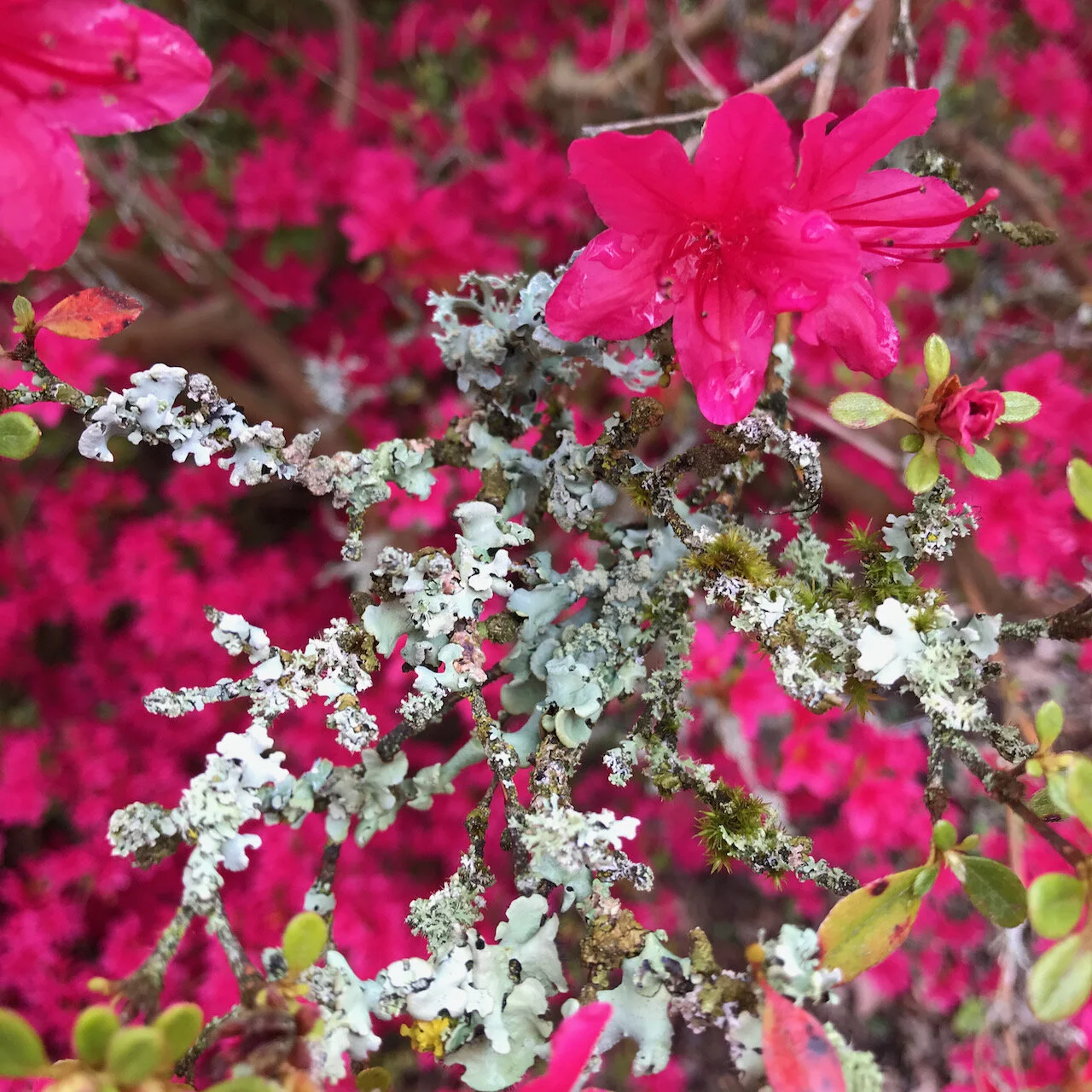 The only thing that could out-dazzle the rhododendrons was the lichen - so to get both, and plenty of it - no words! There was of course much more to see and these delicate succulents tumbling out of an urn were right at the start of our visit and it’s such a calming photo I had to include it here.