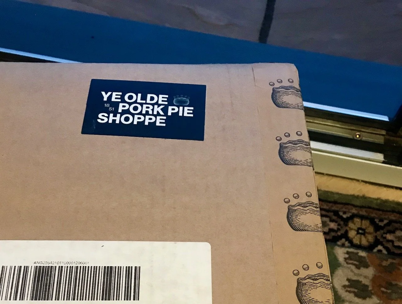 I had some good news during the week when I learnt I’d won a competition on Instagram. The competition was a collaboration between Ye Olde Pork Pie Shoppe and Round Corner Brewery, both of which are based in Melton Mowbray - which is now just down the road. The prize - some pork pies and beer (yay!) - arrived earlier this week, and I couldn’t help but smile when I saw the pork pie parcel tape.