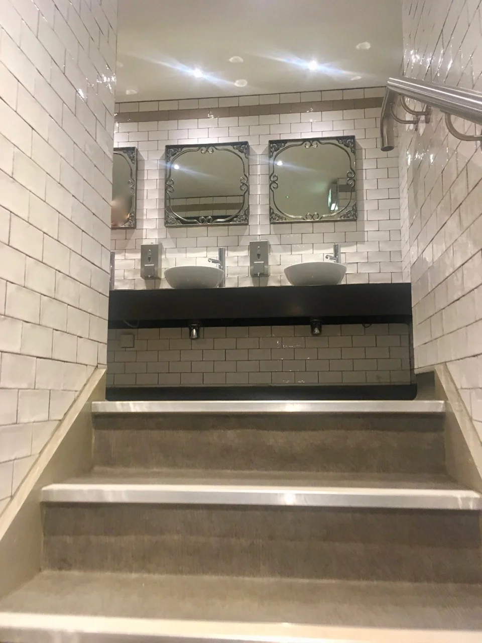 I wasn’t quite ready for what I was to find, but as you can see it all started out fairly normally. Classic tiles, a row of basins and ornate mirrors. There was still a small queue, or rather I was the start of the queue, but that was way better than the previous option.