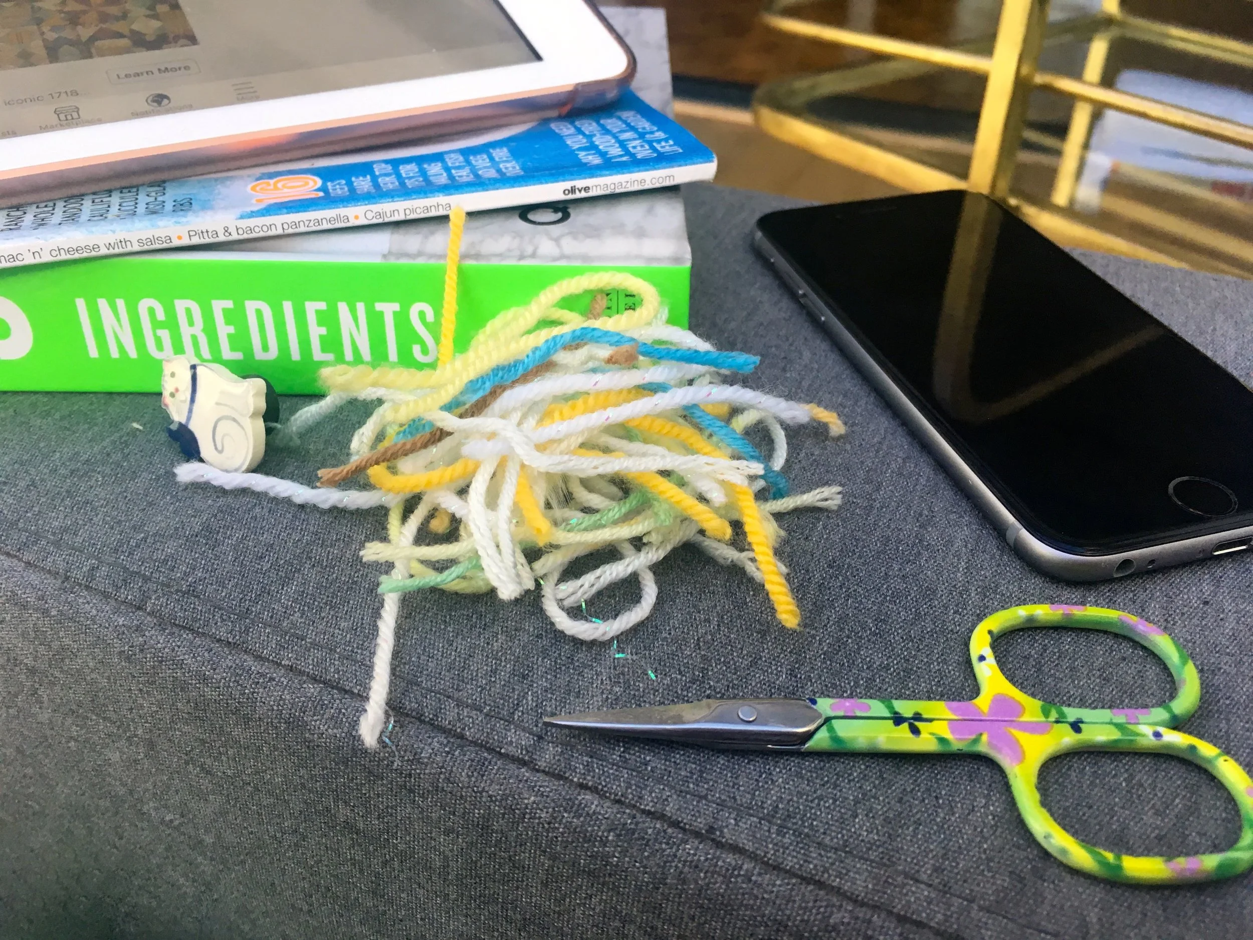 It's a short one from me today, but let me tell you about the photo. It just about sums up last weekend. Something to read, a cook book and a magazine, some crafting - sewing in the ends of my spring crochet and of course some tech. With MOH away, what else could a girl need?