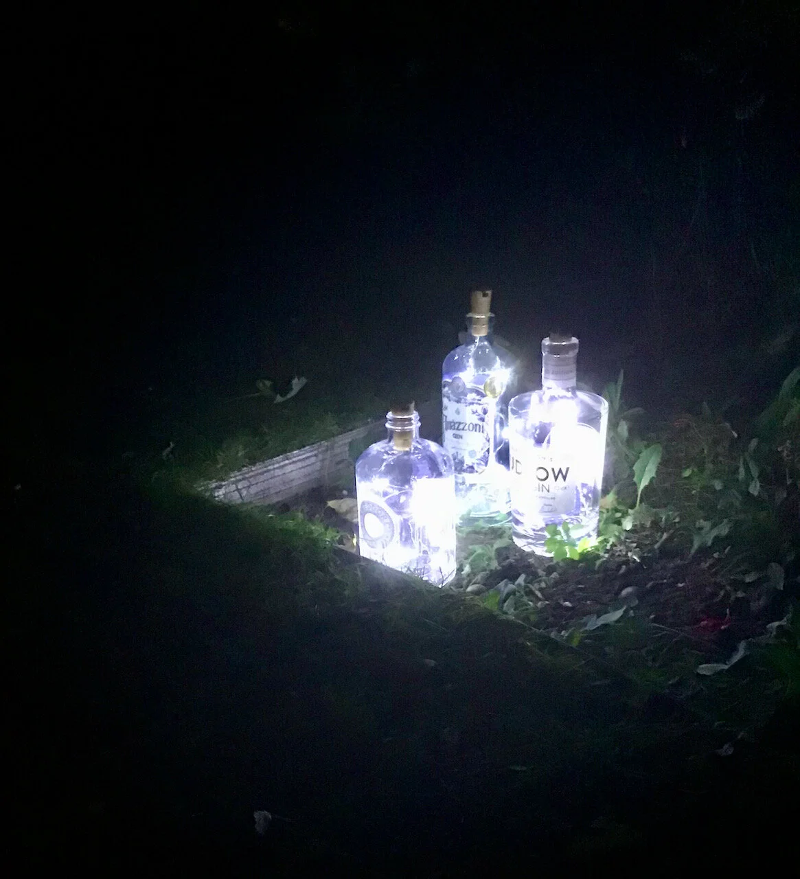 I’d seen lights in bottles, and how pretty they were and I bought a box or two much earlier in the summer. They’re easy to fit and use, but that wasn’t my concern. My concern was the slugs and snails slithering over the labels and leaving a trail of destruction. And so, I’ve tried a layer of PVA Glue over them and I’m hoping that will protect the labels for at least a little while.