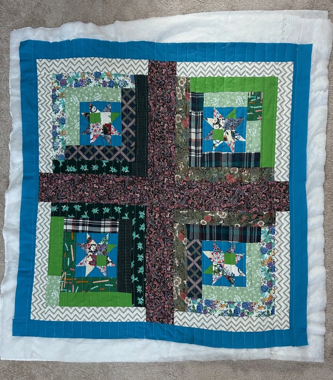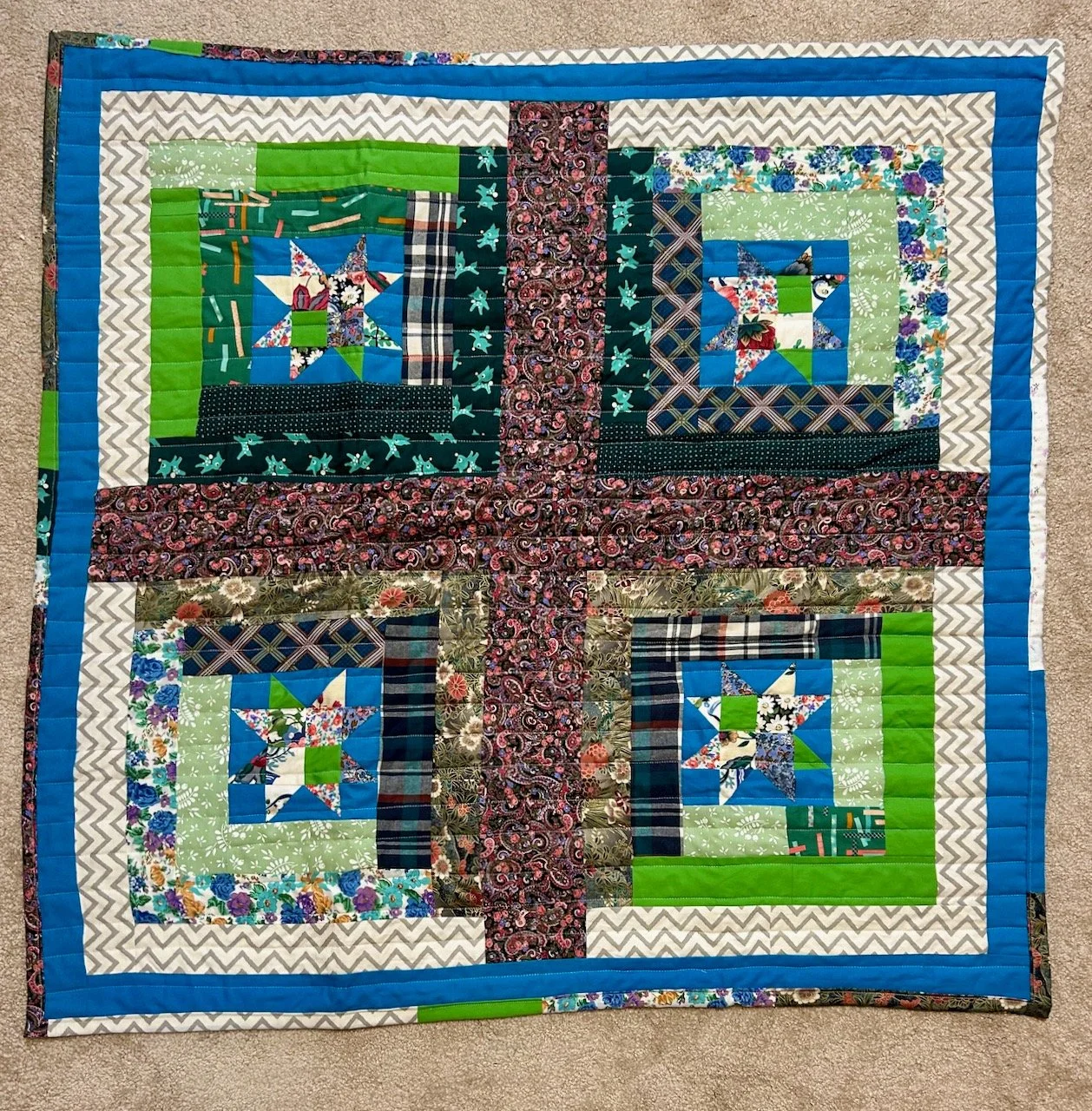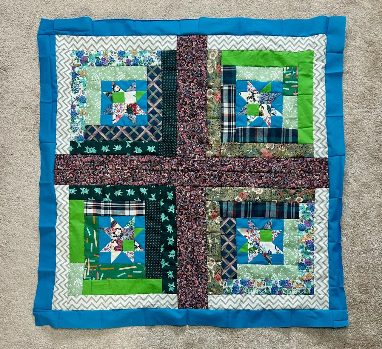 I’ve made another quilt as part of my quilting ‘stretch’ project using the block from Sherri at A Quilting Life’s mystery block a month. As I said then I don’t know if I’ll manage to make a quilt a month, but I won’t really know unless I try…