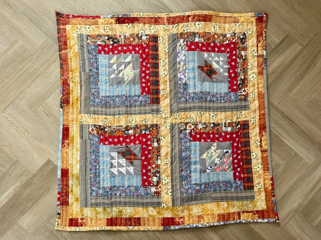 This month I’m sharing my twelfth charity quilt and my new pile is now growing, since the first nine have now been donated to the Mansfield Coordinator of Project Linus UK.