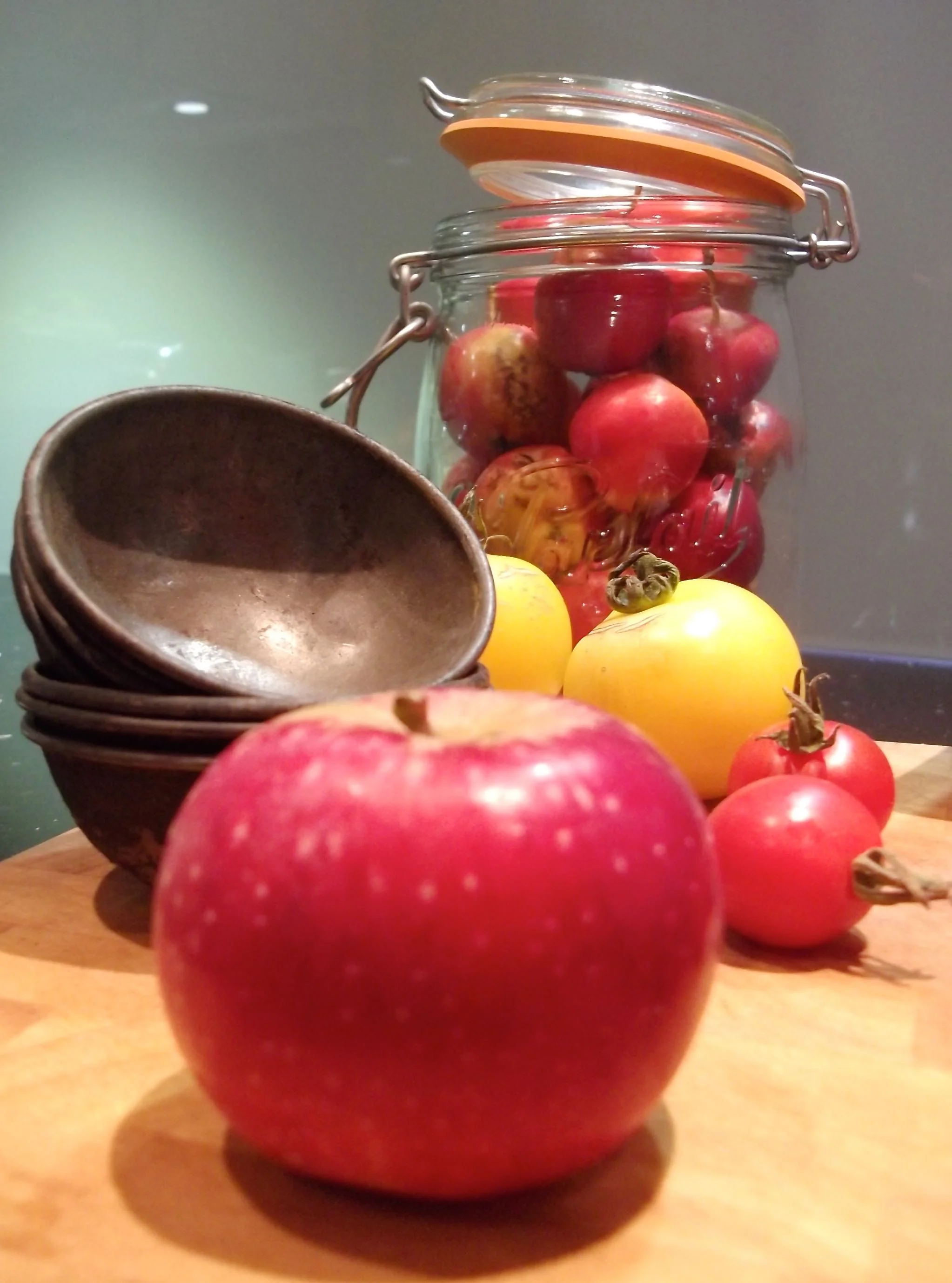 In the starter kit there's lots of green loveliness. A basket - or preserving rack - which fits inside your saucepan and easily holds four jars, a funnel to make filling the jars easier and much safer, a measuring notch which makes it easy to see when the jar is filled to the correct level, four jars and a jar-lifting tool, again a safer way to handle hot jars.