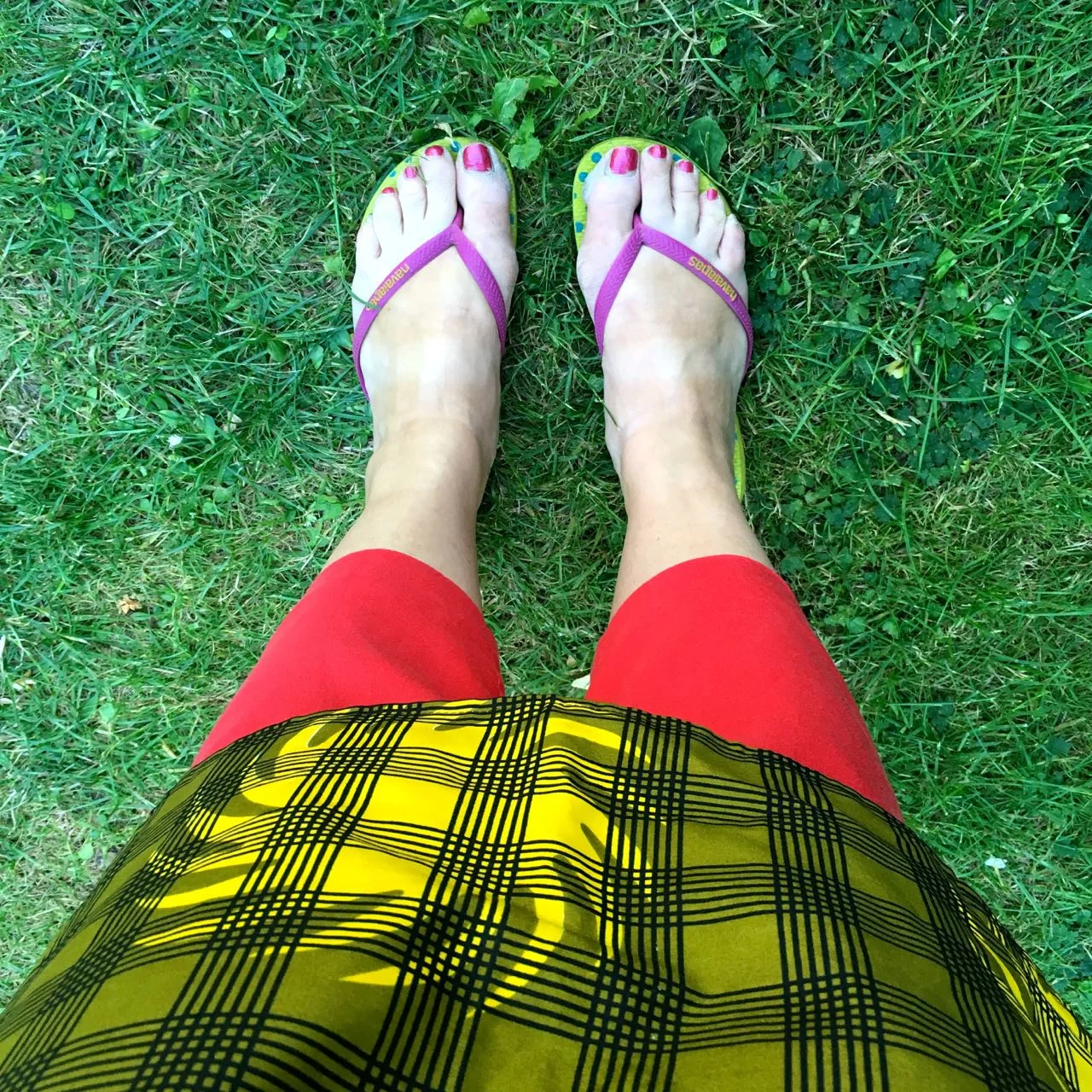 I hadn't really thought my outfit through alongside the apron. The Black and yellow check pattern, which I loved, was stylish and different enough to stand out, but not so much that I felt overly conspicuous, but with orange cropped trousers, that was colourful!
