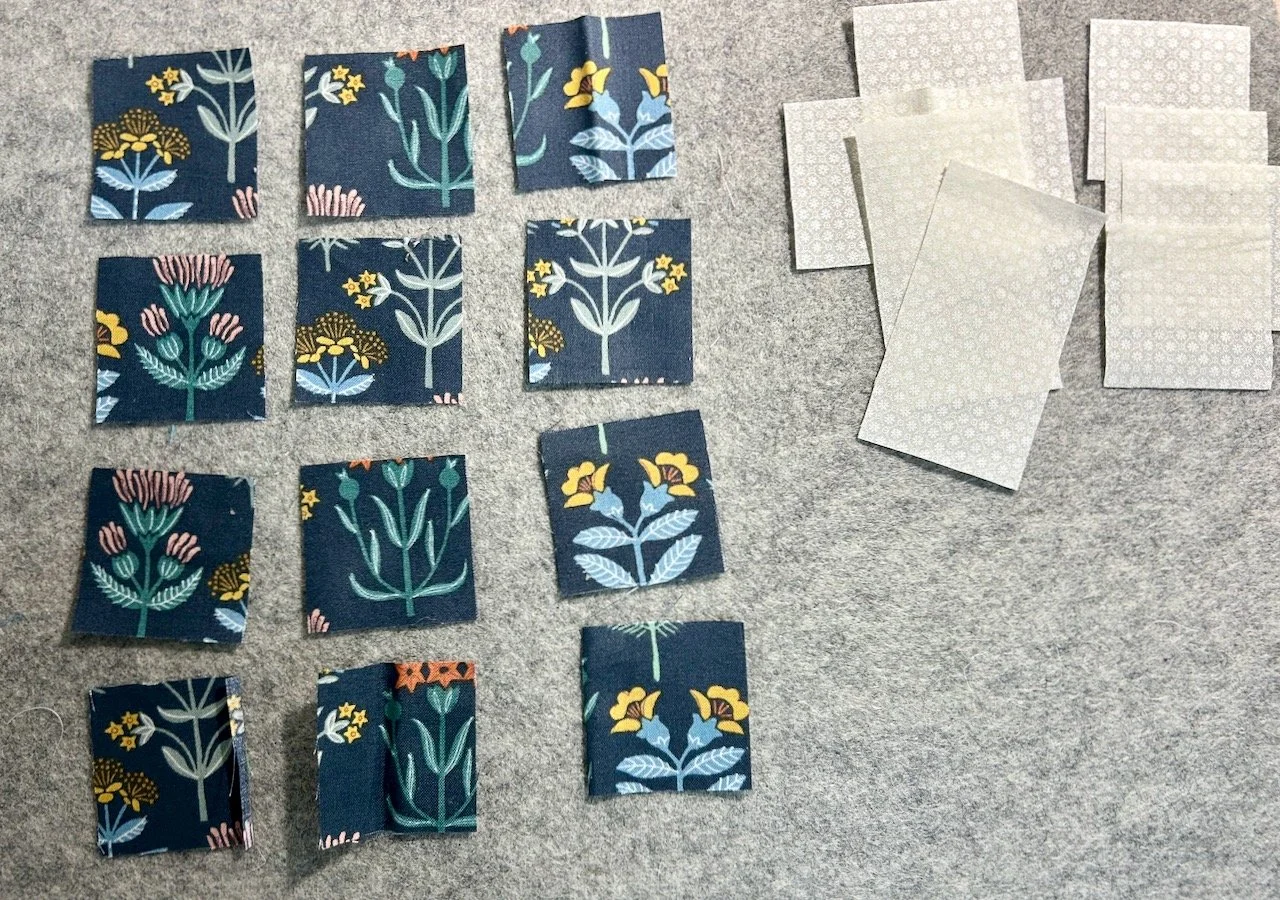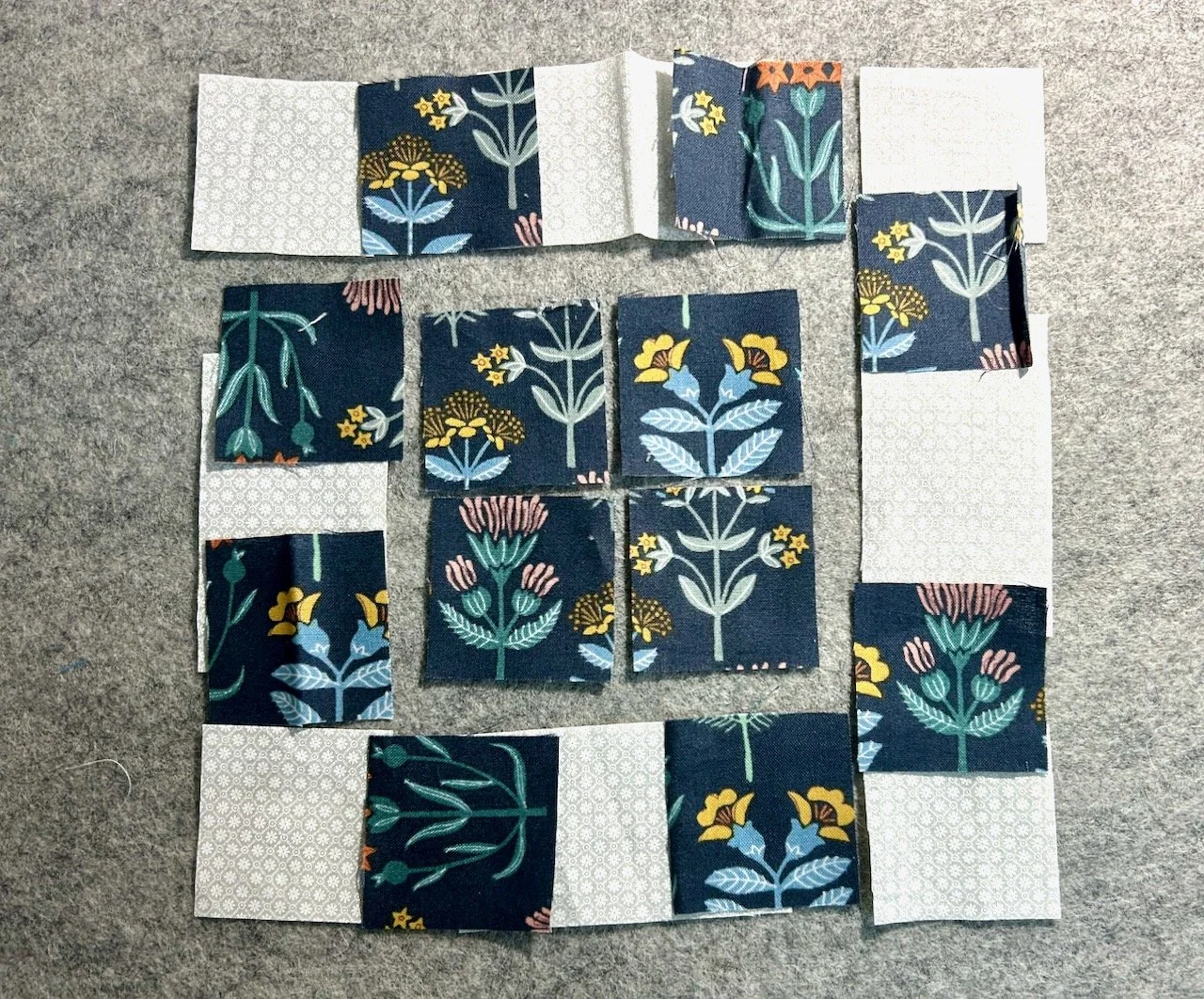 Laying out the individual navy blocks to check if they might work and look 'patchworky' enough