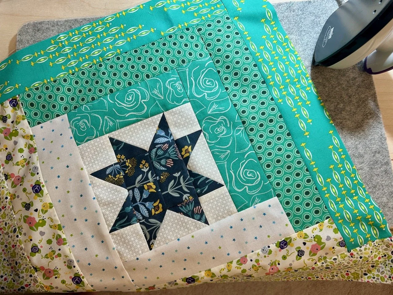 It’s also the first block for a long time that I had to do some unpicking - I mixed up my green order. I contemplated living with it, but as it was only one piece, I decided to head for the seam ripper and add the green fabrics in the same order as before.