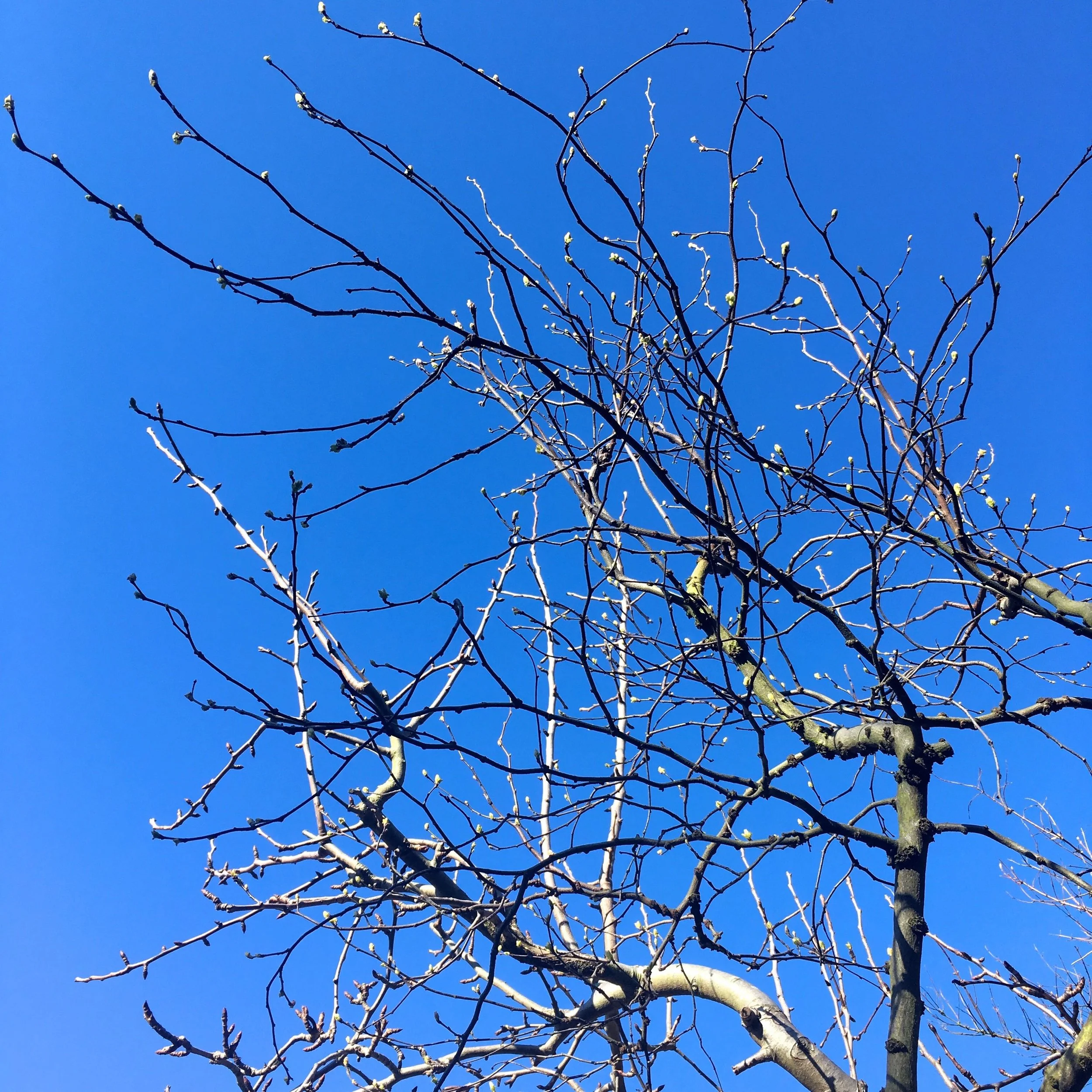 Blue skies and buds on my pear tree